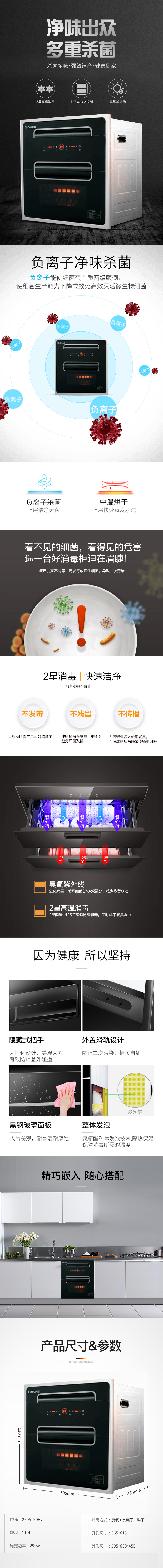 纯黑色外观,隐形拉手,感应开关配合液晶显示界面,美观大方全不锈钢支架,经久耐用。